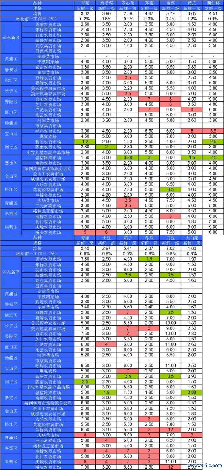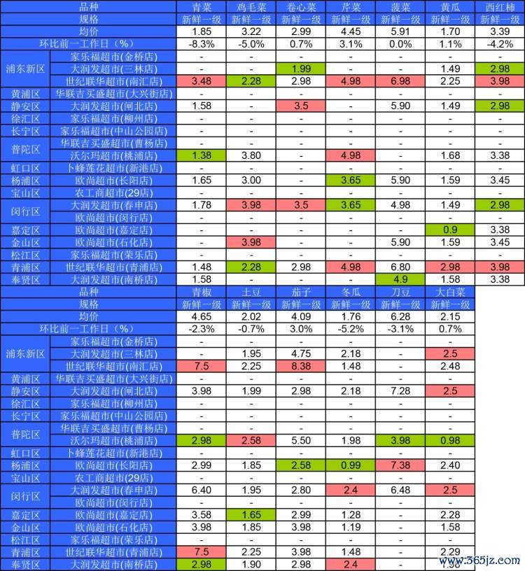 ■粉底标注代表该蔬菜品种在上述农贸市场或超市的最高价;绿底标注代表该蔬菜品种在上述农贸市场或超市的最低价。