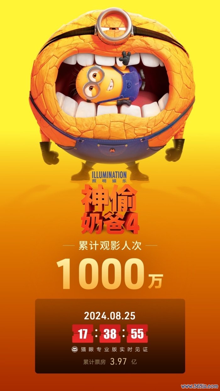 据猫眼专业版数据100倍股票配资平台100倍股票配资平台,电影《神偷奶爸4》上映45天,观影人次破1000万。